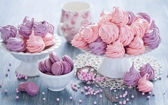 Στρώνουμε λαδόκολλα σε λαμαρίνα. Κόβουμε σε ότι σχήμα θέλουμε. Εναλλακτικά αφήνουμε κουταλιές μαρέγκας αν δεν έχουμε κορνέ. Ψήνουμε στον αέρα στους 80-100 βαθμούς C για περίπου μία ώρα να στεγνώσουν καλά. Όταν ξεκολλάν είναι έτοιμες. Διατηρούνται για πολλές μέρες.