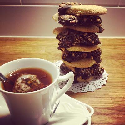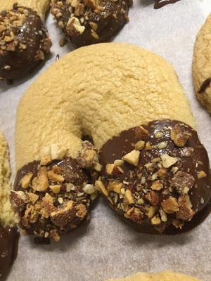 Οταν κρυώσουν τα βουτάμε από τις άκρες στην λιωμένη κουβερτούρα και μετά στο καβουρντισμένο αμύγδαλο ή φουντούκι ..καλή επιτυχία!!!