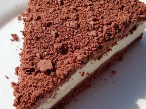 Ξεκινάμε την συνταγή μας με την βάση της τούρτας. Πιο συγκεκριμένα θρυμματίζουμε τα μπισκότα με σοκολάτα και τα ανακατεύουμε καλά με το λιωμένο βούτυρο και το φρέσκο γάλα μέχρι να ομογενοποιηθεί το μείγμα. Βάζουμε το μείγμα σε ένα τσέρκι και το πατάμε ελαφρώς. Το βάζουμε στο ψυγείο μέχρι να παγώσει καλά.