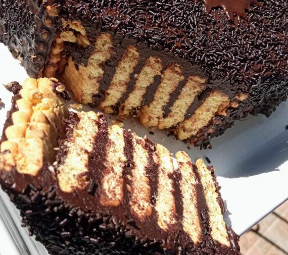 Συνταγή για σοκολατένια, τρουφάτη τούρτα κορμός με μπισκότα πτι μπερ. Μια πολύ εύκολη και γρήγορη τούρτα ακόμη και για αρχάριες
