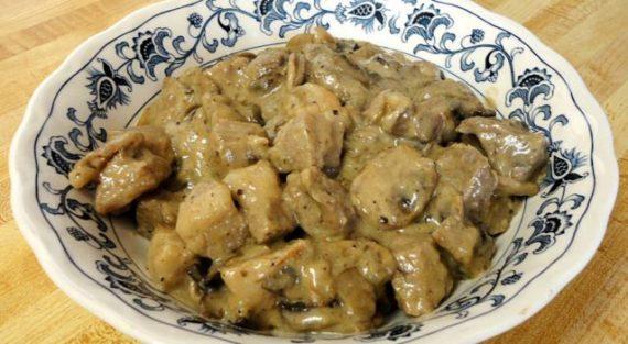 Υλικά συνταγής 1/2 κιλό χοιρινό (από ώμο) κομμένο σε κύβους-μπουκίτσες 1 μεγάλο ξερό κρεμμύδι ψιλοκομμένο 1 μικρή σκελίδα σκόρδου ψιλοκομμένη ή 1 κ.γ. σκόρδο σε σκόνη 3-4 κ.σ. ελαιόλαδο 220 γρ. μανιτάρια λευκά φρέσκα σε φέτες 1/2 φλ. ζωμό κότας ζεστός 3/4 φλ. τσαγιού κρέμα γάλακτος 1 κ.γ. κορν φλάουερ 1 κ.γ. μουστάρδα 2 κ.σ. λευκό ξηρό κρασί αλάτι πιπέρι