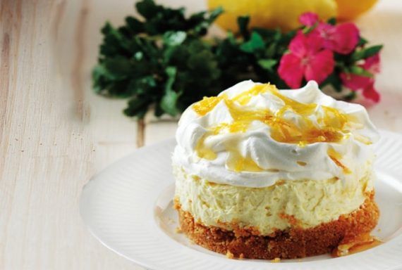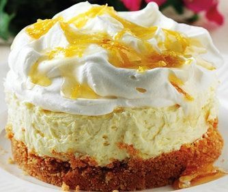 Για τη γέμιση: Βάζουμε το τυρί κρέμα σε μπολ, προσθέτουμε τη ζάχαρη και με μίξερ χειρός το χτυπάμε για λίγο, να αφρατέψει. Προσθέτουμε ένα ένα τα αυγά, να τα απορροφάει το μείγμα. Τέλος, προσθέτουμε το ξύσμα και το χυμό λεμόνι. Χτυπάμε τα υλικά μέχρι να κρεμώσει καλά το μείγμα. Στρώνουμε την κρέμα πάνω στη βάση του τσιζ κέικ. Ψήνουμε το γλυκό στους 160ΟC για περίπου 50΄-55΄. Αφήνουμε να κρυώσει στο φούρνο με την πόρτα μισάνοιχτη. Το παγώνουμε για μία νύχτα. Απλώνουμε τη χτυπημένη κρέμα γάλακτος και διακοσμούμε με κομμάτια από γλυκό λεμόνι.
