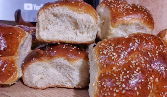 250 g lukewarm water 1 tbsp sugar 50 g fresh yeast ———————————— 1 kg bread flour 100 g melted butter 2 medium eggs 250 g kefir 1 tsp baking soda 1 tsp mahlab 1/2 tsp cardamom 1/2 tsp salt 2 vanilla 200 g sugar 2 g mastic 50 g vegetable oil ————————————- 1 egg 1 tbsp milk sesame ————————————- 19 pieces
