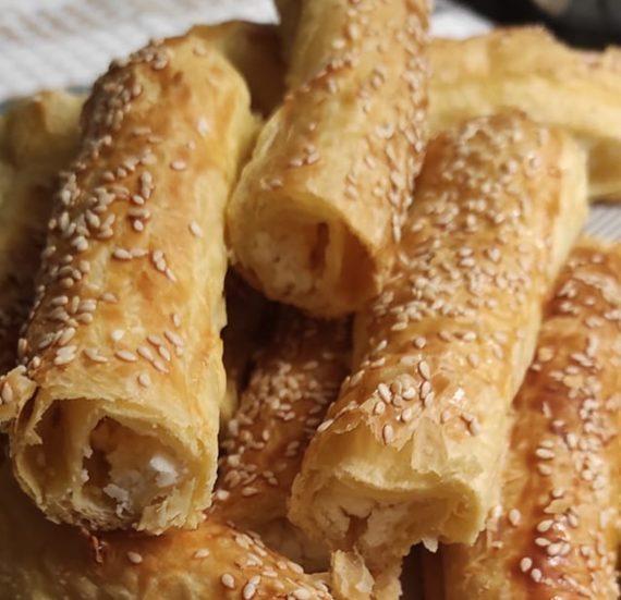 Συνταγή για Τυροκούλουρα με σφολιάτα. Τραγανά και πεντανόστιμα τυροκούλουρα για το σχολείο ή για κολατσιό στην δουλειά με μόλις 4 υλικά!