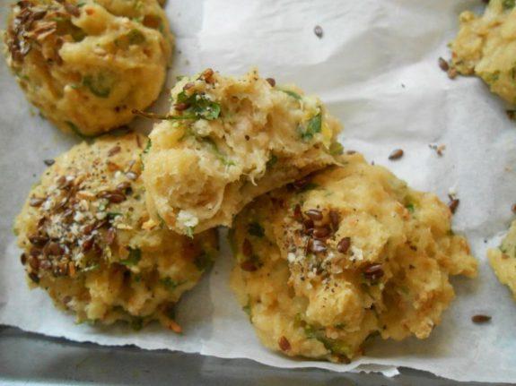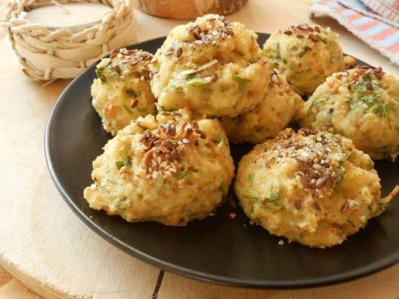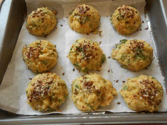 Step 3 Divide the mixture into 9 pieces of the dough into round balls. The place on a tray lined with greaseproof paper and if we sprinkle with sesame seeds or flax seeds ground.