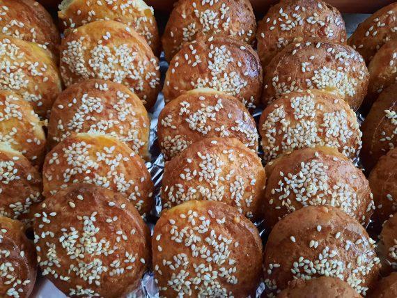 Πασπαλίζουμε εάν θέλουμε με σουσάμι και ψήνουμε στους 180 βαθμούς, αέρα, για 20 λεπτά περίπου ή μέχρι να πάρουν ωραίο χρυσαφένιο χρώμα. Βγάζουμε από τον φούρνο, μεταφέρουμε σε σχάρα και αφήνουμε για λίγη ώρα να κρυώσουν.