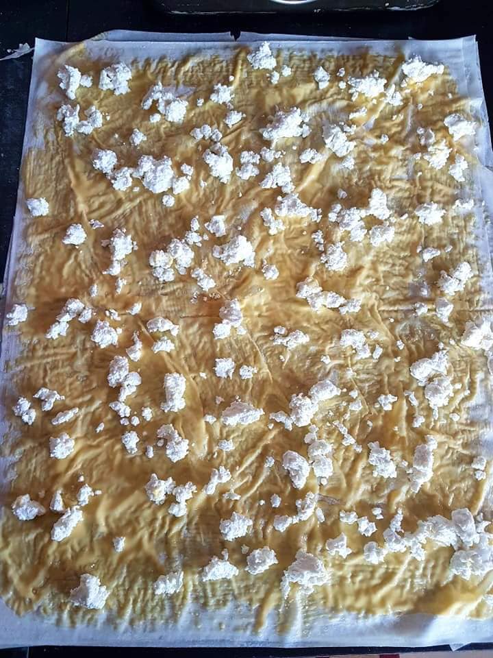 1 πακέτο φύλλο κρούστας 4 αυγά 3/4 φλ σπορέλαιο 1 φλ γιαούρτι 1 φλ του γαλλικό καφέ ( δείτε την τελευταία φωτογραφία ) καλαμποκάλευρο 1 φακελάκι baking powder 500γρ φετα η ότι άλλο θέλετε. Εγώ έβαλα κατσικίσιο…