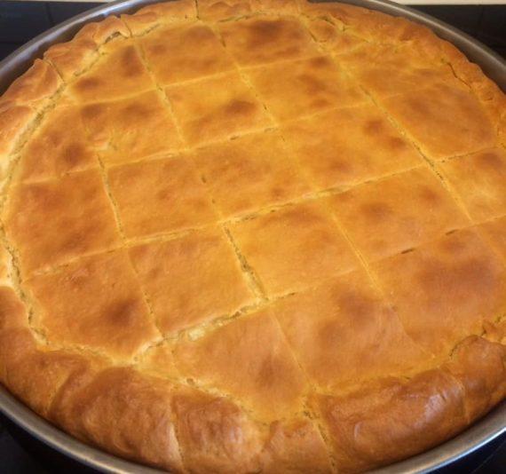 Τυρόπιτα, με αφράτη χειροποίητη ζύμη τύπου κουρού με μαγιά και λαχταριστή γέμιση από φέτα, κρέμα γάλακτος και αυγά. Μια συνταγή για αφράτη τυρόπιτα με σπιτική ζύμη και απλά υλικά που μπορείτε να φτιάξετε εύκολα. Καθώς ψήνεται η τυρόπιτα μοσχοβολάει όλο το σπίτι και σου σπάει τη μύτη. Ιδανική για το κολατσιό των παιδιών στο σχολείο άλλα και σαν σνακ για τις απογευματινές λιγούρες μιας και η συγκεκριμένη ζύμη είναι πολύ νόστιμη και κρύα. Φτιάξτε την ακολουθώντας την συνταγή και θα την λατρέψει όλη η οικογένεια.