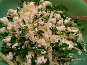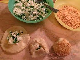 Για τη γέμιση: 1 φλιτζάνι τυριά τριμμένα φέτα, κασέρια, μυζήθρα. 2-3 κ.σ. μαιδανό ψιλοκομμένο