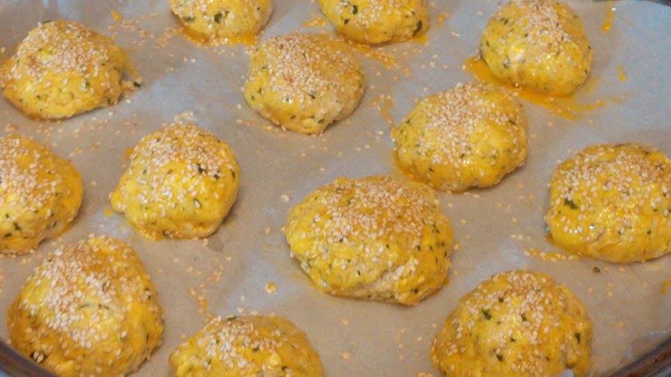 Υλικα 1|2 κιλο τυρι φετα 1 κουπακι γιαουρτι 1 κουπακι σπορελαιο 1 ματσακι ψιλοκομμενο μαιντανο 2 αυγα το ασπραδι για το μειγμα και οι κροκοι για αλειμμα 1 μπεικιν αλευρι που φουσκωνει μονο του 2 κουταλιες καλαμποκαλευρο σουσαμι Εκτελεση Τριβω το τυρι με το πιρουνι η με τα χερια μου! Προσθετω το γιαουρτι ,το λαδι,τα ασπραδια των αυγων,το μαιντανο και ανακατευω! Στη συνεχεια προσθετω το καλαμποκαλευρο,το μπεικιν και το αλευρι μεχρι να μπορεσω να τα πλασω το μειγμα χωρις να κολλανε στα χερια μου! Πλαθω μπαλακια μικρα σαν μανταρινακια και τα τοποθετω σε ταψι με λαδοκολλα! Αλειφω με αυγο και πασπαλιζω με σουσαμι! Ψηνω στους 180 β για 20 λ μεχρι να ροδισουν! Ειναι γρηγορα νοστιμα και τραγανα! Καλη επιτυχια