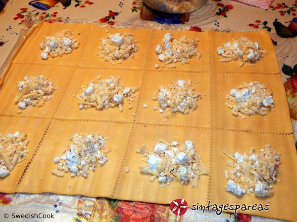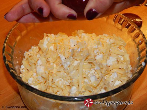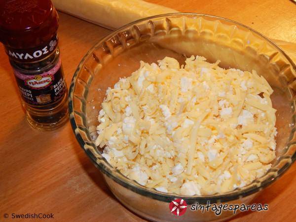 12 τεμάχια 1 φύλλο σφολιάτα 200 γρμ φέτα τριμμένη 200 γρμ gouda τριμμένο φρεσκοτριμμένο πιπέρι