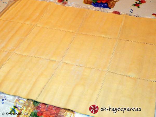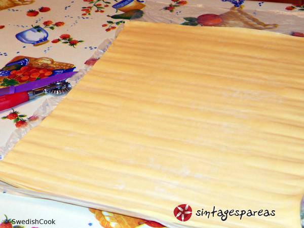 Ξετυλίγουμε το φύλλο σφολιάτας σε όλο το μήκος του. Προσωπικά προτιμώ φρέσκια σφολιάτα που τη προμηθεύομαι από εργαστήριο ζύμης…