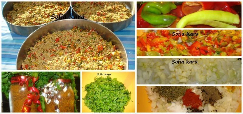 Τα εβαλα ολα στη λεκανη που ειχα τις πιπεριες και αρχισα να ζυμωνω ολα τα υλικα μαζι.