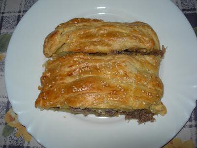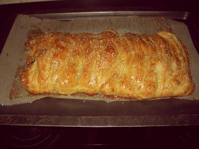 Τέλος κλείνω μία μία τις φάσεις εναλλάξ δεξιά -αριστερά μέχρι να τελειώσουν όλες. Αλείφω με αυγό από πάνω αφού το χτυπήσω λίγο πρώτα και ρίχνω λίγο σουσάμι. Ψήνω για 40 λεπτά περίπου στους 180 βαθμούς μέχρι να ροδίσει !!!
