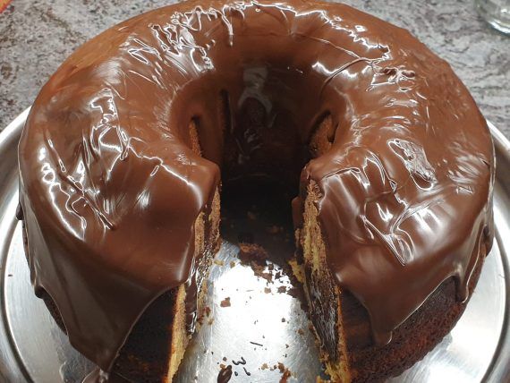 Αφράτο νηστίσιμο κέικ πορτοκαλιού με γλάσο σοκολάτας