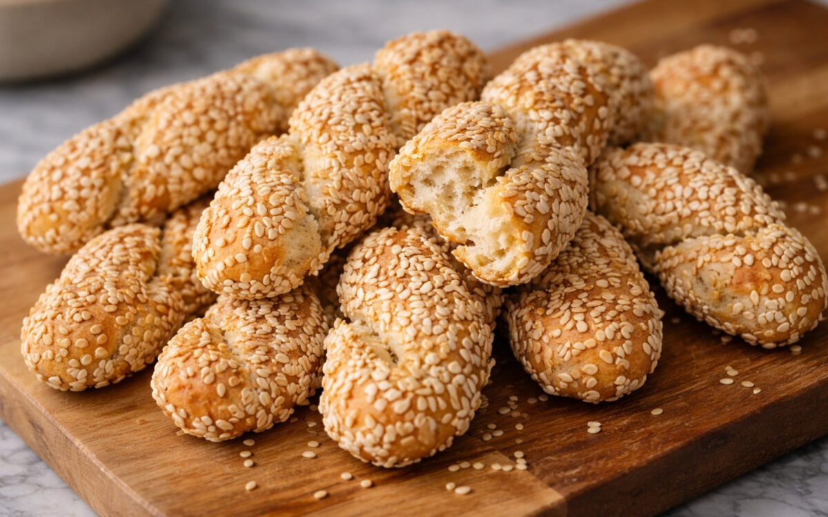 1/2 tsp cardamom powder 1/4 tsp mastic powder 20 g Baking powder 1 tsp baking soda — 200 g Warm water 1 tbsp honey — Sesame