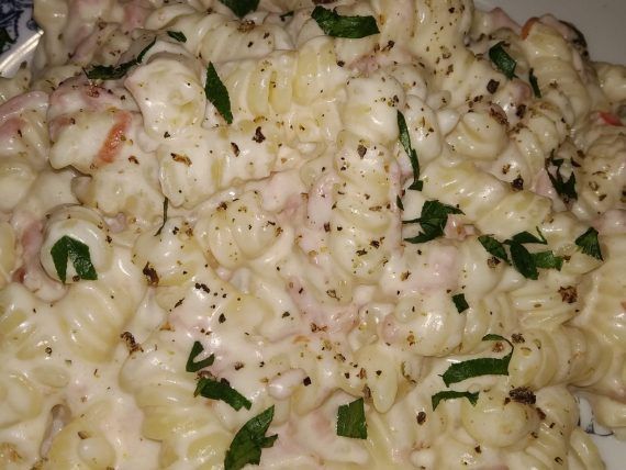 Αν έχετε ξεμείνει από ιδέες θα σας δείξουμε εμείς τί να μαγειρέψετε αύριο. Φτιάξτε μία νόστιμη μακαρονάδα με βίδες ή ό,τι ζυμαρικά έχετε στο ντουλάπι σας, με ζαμπόν, τυρί κρέμα και μία κρεμώδη λευκή σάλτσα με κρέμα γάλακτος και τριμμένο ρεγκάτο. Σκέτη κόλαση!