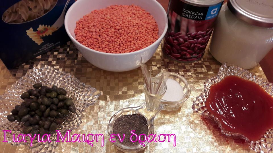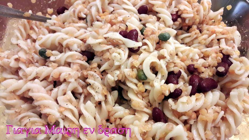 Βίδες με όσπρια σαλάτα Μια σαλάτα που εγώ αγαπάω πολύ. Την τρώνε τα παιδάκια γιατί η φακή μπαίνει μέσα στις βίδες και δεν την καταλαβαίνουν εύκολα, και επίσης τα μεξικάνικα φασόλια ξεγελούν με το χρώμα τους.