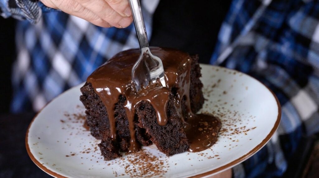 Ψήνουμε σε προθερμασμένο φούρνο στον αέρα στους 170c για 45-50 λεπτά. Πριν βγάλουμε το κέικ σε ένα κατσαρολάκι ρίχνουμε το ζαχαρούχο γάλα, το βραστό νερό, το κακάο και ανακατεύουμε μέχρι να ζεσταθεί χωρίς να βράσει. Με οδοντογλυφίδα κάνουμε τρύπες στο καυτό κέικ και το κόβουμε σε κομμάτια. Προσθέτουμε το καυτό γλάσο στο καυτό κέικ και το αφήνουμε να τραβήξει καλά και να κρυώσει. Σερβίρουμε και απολαμβάνουμε. Σας άρεσε αυτή η συνταγή; Πείτε μας την γνώμη σας στα σχόλια.