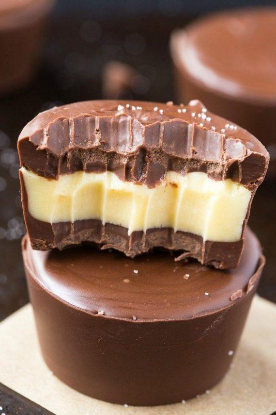 Σε ένα ταψί για μάφιν τοποθετείτε τις ειδικές θήκες για μάφιν κι αφήνετε στην άκρη. Σε ένα πυρίμαχο μπολ λιώνετε το λάδι καρύδας. Προσθέτετε το κακάο και ανακατεύετε μέχρι να φύγουν τα γρομπαλάκια. Αν χρησιμοποιείτε γλυκαντικό το προσθέτετε τώρα. Στο σημείο αυτό δουλεύετε γρήγορα : Παιρνάτε με λιωμένη σοκολάτα όλα τα φορμάκια για μάφιν και κρατάτε ποσότητα για την επικάλυψη. Αφήνετε στην κατάψυξη να σφίξουν. Μόλις στερεοποιηθεί η σοκολάτα μοιράζετε το βούτυρο καρύδας στα φορμάκια ισομερώς και καλύπτετε με την σοκολάτα. Αφήνετε στην κατάψυξη μέχρι να είναι έτοιμα. Αν χρησιμοποιείτε σταγόνες stevia βάλτε όσες σταγόνες θεωρείτε απαραίτητες.