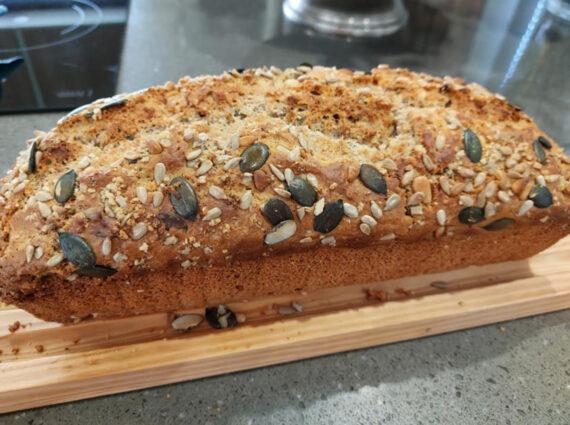 Συνταγή για ένα Υγιεινό ψωμί με αλεύρι ολικής, σπόρια και ξηρούς καρπούς. Αφράτο πολύσπορο ψωμί σαν του φούρνου που δεν χρειάζεται ζύμωμα ,γίνεται στην φόρμα του κέικ και είναι ιδανικό για τις αρχάριες νοικοκυρές. Επίσης μπορείτε να το βάλετε μαζί στα παιδιά στο σχολείο.