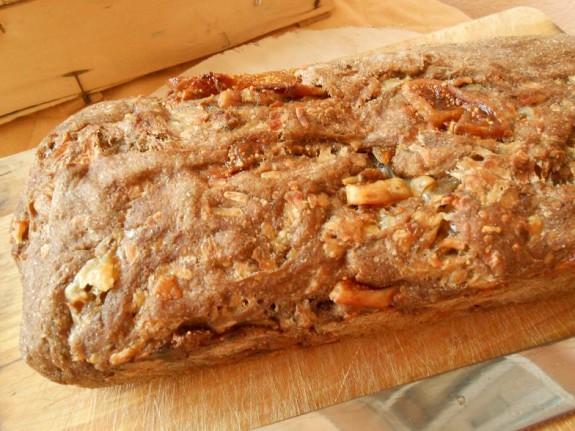 Step 4 Let it stand 2 hours and bake in preheated oven at 200C for 40-45 minutes. Leave the bread to cool slightly to remove from pan and serve.