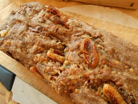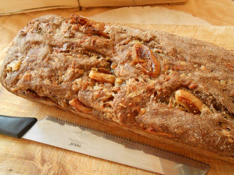 Ingredients 3 cups wholemeal flour and extra for kneading 1 sachet yeast powder salt & pepper 1 ½ Cup lukewarm water ½ cup chopped dried figs ½ cup almond grounded ½ Cup grated Gruyere or diced Method Step 1 Put in a bowl the flour, the yeast and Spice. Mix and pour the water. Knead until you get a uniform mixture of sticky.