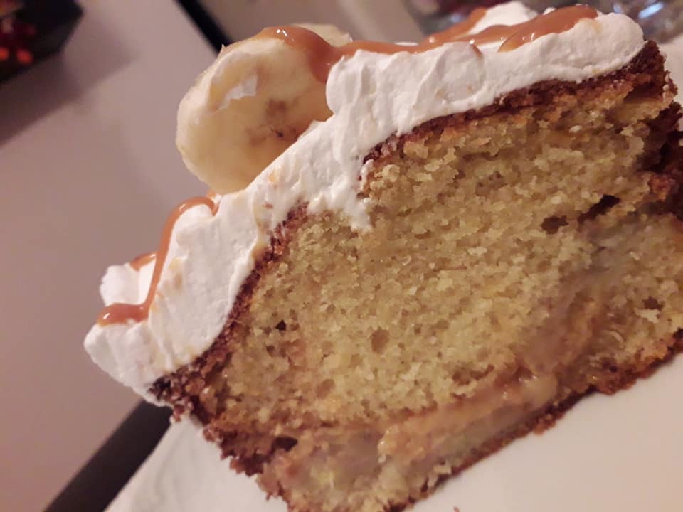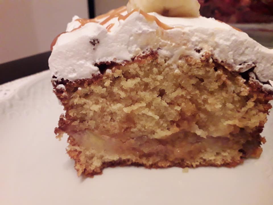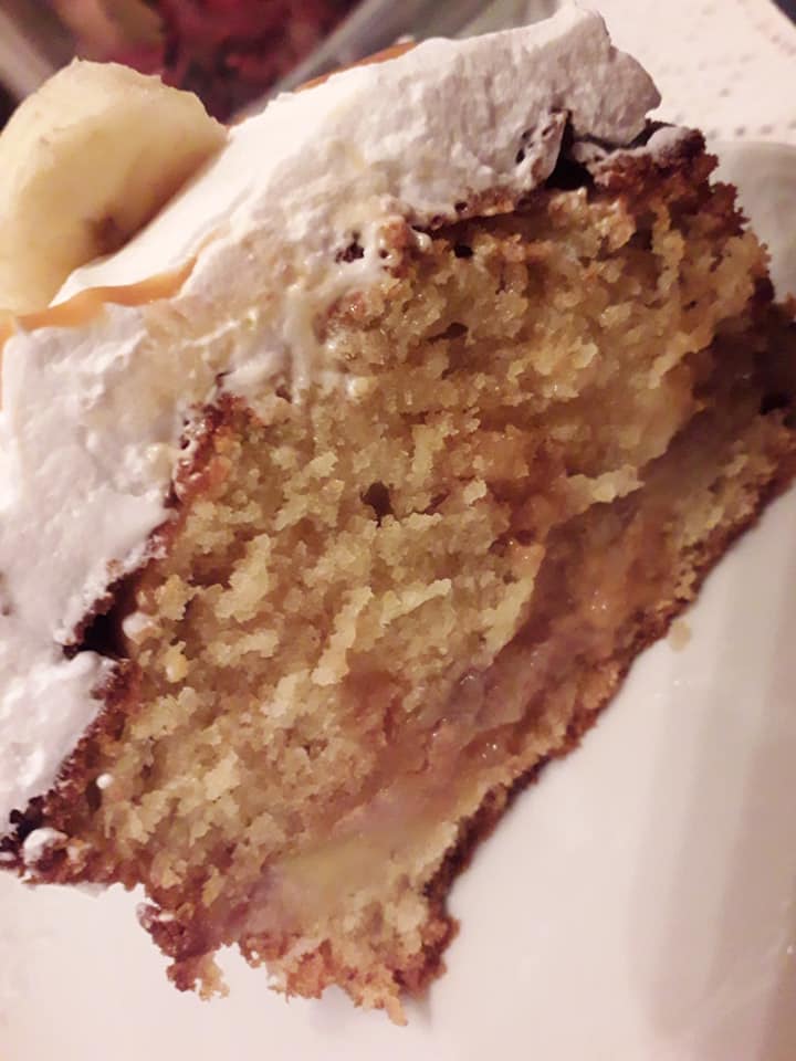 Υλικά 200γρ.φαρινα 1 1/2 κουταλάκι μπεικιν 110 γρ.βουτηρο 1 βανίλια 2 αυγά 100γρ.γαλα 3 μπανανες 3/4 του κουτιου ζαχαρουχο καραμελωμένώ