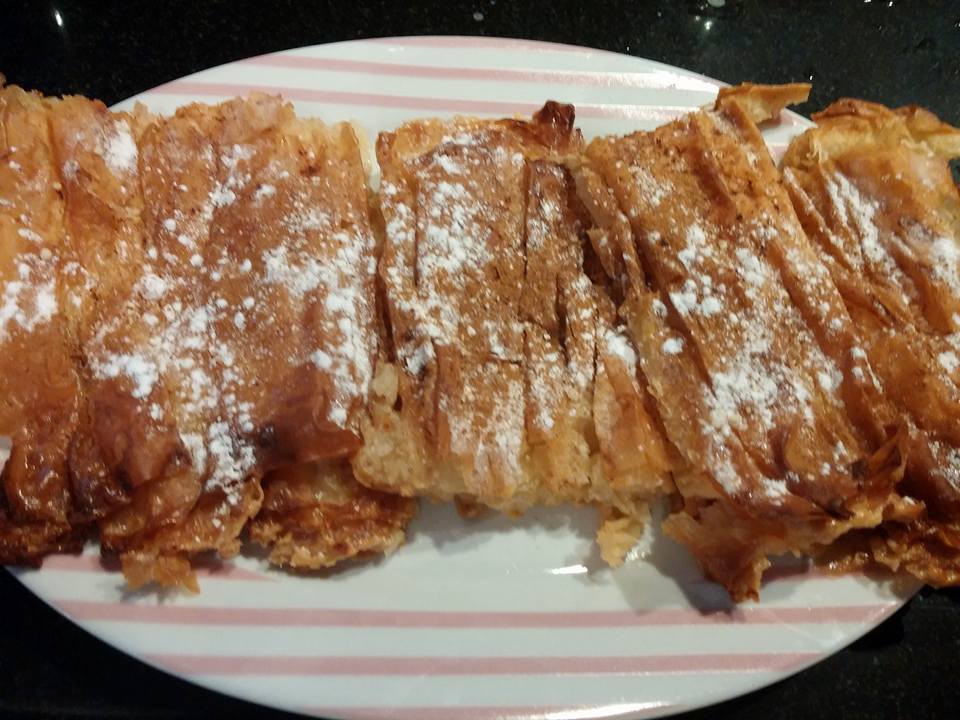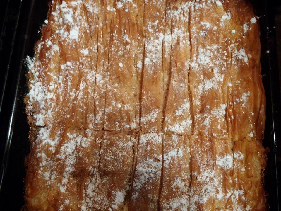 Βγάζουμε την μπουγάτσα από τον φούρνο και την αφήνουμε να κρυώσει λίγο (15 λεπτά). Ρίχνουμε από πάνω τη ζάχαρη αχνη και την κανέλα και σερβίρουμε! Ευκολη και πεντανοστιμη!