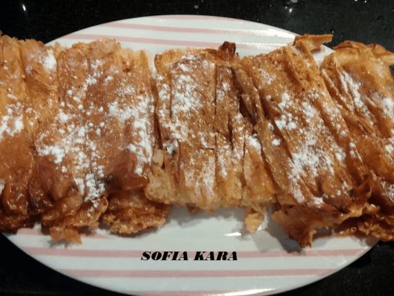200 γρ. βούτυρο LYRPAK 1 πακέτο φύλλο κρούστας 450 gr 1 κουτί ζαχαρούχο γάλα 800 γρ. νερό 2 βανίλιες 1/2 κούπα ζάχαρη αχνη και κανέλα, για πασπάλισμα Ξυσμα απο ενα πορτοκαλι