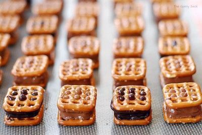 Μόλις τα βγάλουμε από τον φούρνο θα δείτε ότι θα έχουν λιώσει τα μίνι μπαρ οπότε βάζουμε ακόμη ένα Pretzel και φτιάχνουμε ένα σάντουιτς