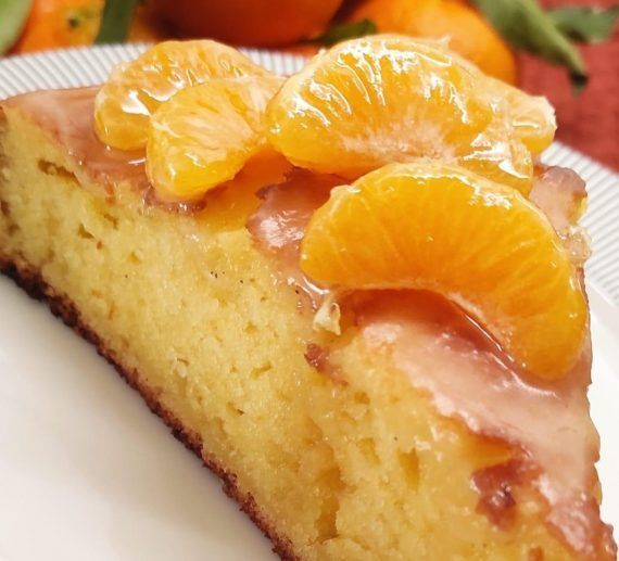 Μεταφέρουμε το μείγμα σε μία φόρμα 18 εκατοστών και το ψήνουμε πάνω κάτω εστία, στους 170 βαθμούς Κελσίου για περίπου 50 λεπτά, ανάλογα και τον φούρνο που διαθέτουμε. Περιχύνουμε το κέικ με το γλάσο μανταρινιού και απολαμβάνουμε.