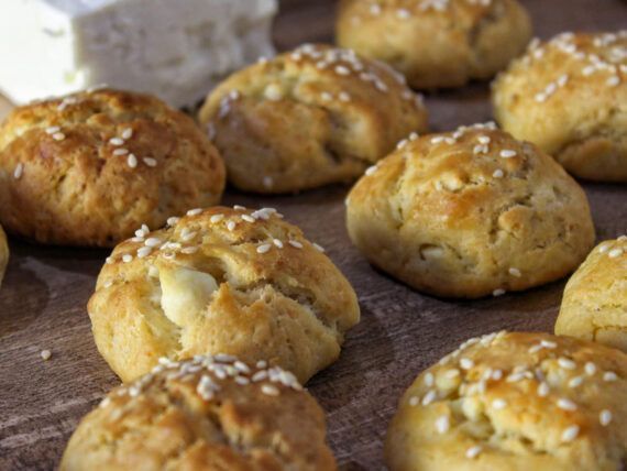 Φτιάχνουμε μπαλάκια των 30 γρ., τα βάζουμε σε ταψί με λαδόκολλα, αλείφουμε με αυγό και πασπαλίζουμε προαιρετικά με σουσάμι. Ψήνουμε σε προθερμασμένο φούρνο στις αντιστάσεις στους 200 για περίπου 20′-25′.