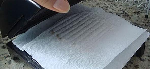 Η τοστιέρα συσσωρεύσει πολύ εύκολα υπολείμματα από βούτυρο, λάδι και τυρί, τα οποία δεν βγαίνουν εύκολα. Αν, μάλιστα, οι πλάκες της δεν βγαίνουν η δουλειά σας γίνεται δυσκολότερη. Για ν’ αποφύγετε την ταλαιπωρία του να τρίψετε την τοστιέρα ή να μπείτε σε περιττά έξοδα αγοράζοντας μία καινούρια, εφαρμόστε το εξής: αφού την χρησιμοποιήσετε, βγάλτε την από την πρίζα και βάλτε ανάμεσα στις πλάκες δύο φύλλα χαρτί κουζίνας ελαφρώς βρεγμένα. Η θερμότητα που έχει μείνει, θα μετατρέψει το νερό σε ατμό, που θα διαλύσει τη βρωμιά και τα λίπη. Στο τέλος, απλώς σκουπίστε με ένα στεγνό φύλλο κουζίνας.