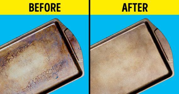 1. Κάντε τα παλιά ταψιά του φούρνου να φαίνονται σαν καινούργια.