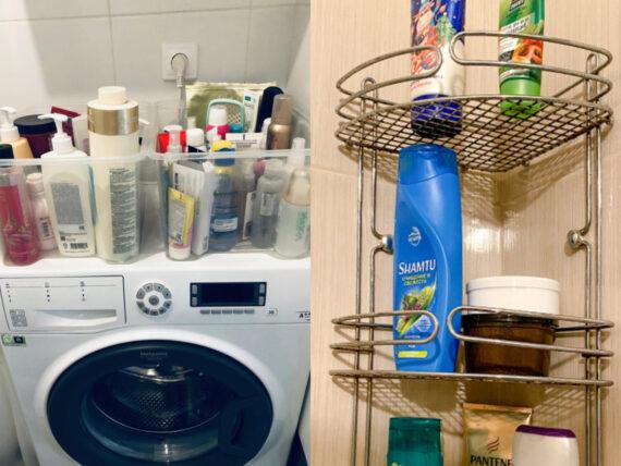 Αν έχεις μικρό μπάνιο, σου φαίνεται καλή ιδέα να βάλεις μερικά πράγματα όπως σαμπουάν, απορρυπαντικά και καλλυντικά πάνω από το πλυντήριο. Παρόλα αυτά, δεν κερδίζεις χώρο αλλά κάνεις το μπάνιο να δείχνει μικρότερο και ατακτοποίητο. Καλύτερα να αγοράσεις ένα επιπλέον ντουλάπι ή βάση για τον τοίχο.