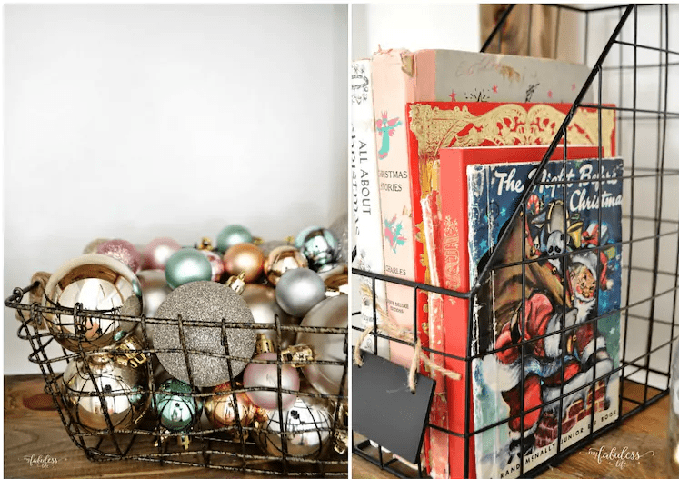 Δεν χρειάζεται να αρχίσετε τις χειροτεχνίες για να βάλετε το σπίτι σας στο κλίμα των Χριστουγέννων, πάρτε ένα συρματένιο καλάθι και γεμίστε το με χριστουγεννιάτικες μπάλες ή με τα αγαπημένα σας βιβλία των διακοπών.