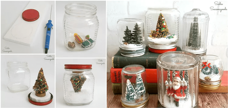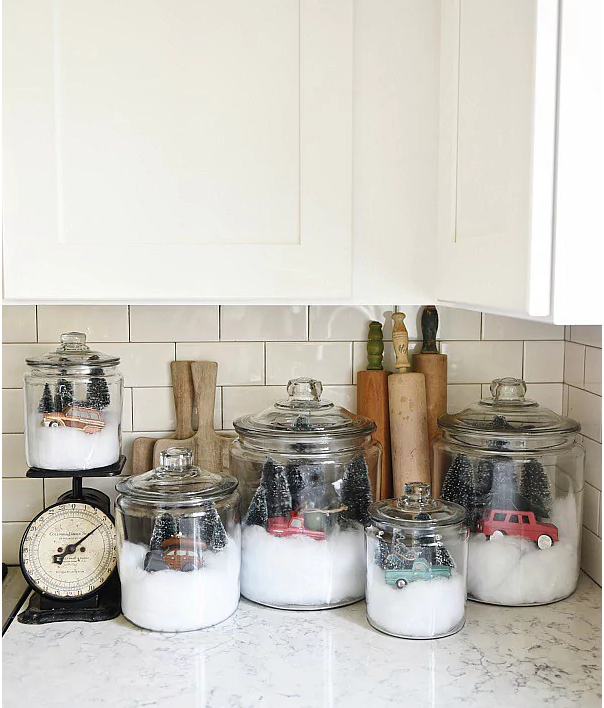 Αν αγαπάτε τις χριστουγεννιάτικες διακοσμήσεις, τότε μπορείτε να φτιάξετε αυτές τις πανέμορφες χιονόμπαλες που είναι φτιαγμένες με τα βαζάκια για τα μπισκότα. Ταιριάζουν τέλεια στην κουζίνα.