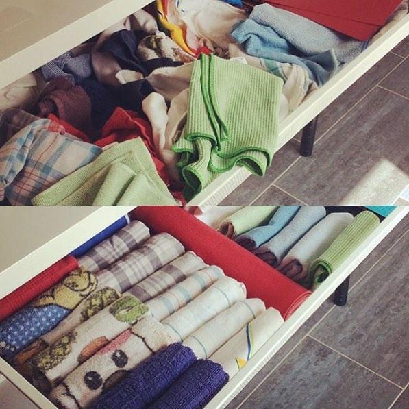 Οι πετσέτες και τα ρούχα που είναι αποθηκευμένα σε συρτάρια, πρέπει να διατηρούνται κάθετα και σε σειρές. Αυτός είναι ο ευκολότερος τρόπος να βρείτε γρήγορα αυτό που ψάχνετε.