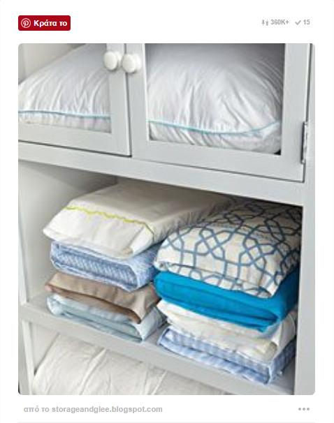 Τα σιδερωμένα και διπλωμένα κλινοσκεπάσματα, διατηρούνται καλύτερα αν τα τοποθετήσετε σε μαξιλαροθήκες από κάθε σετ.