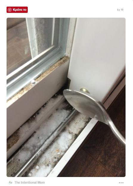 Η βρωμιά και η σκόνη που βρίσκονται συχνά στις γωνίες των παραθύρων, πρέπει να καθαρίζονται με μαγειρική σόδα και ξύδι. Αφήστε το μείγμα για 5-10 λεπτά και έπειτα χρησιμοποιήστε μια οδοντόβουρτσα για να το μετακινήσετε από τη γωνία προς το κέντρο. Αφαιρέστε το με μια πετσέτα.
