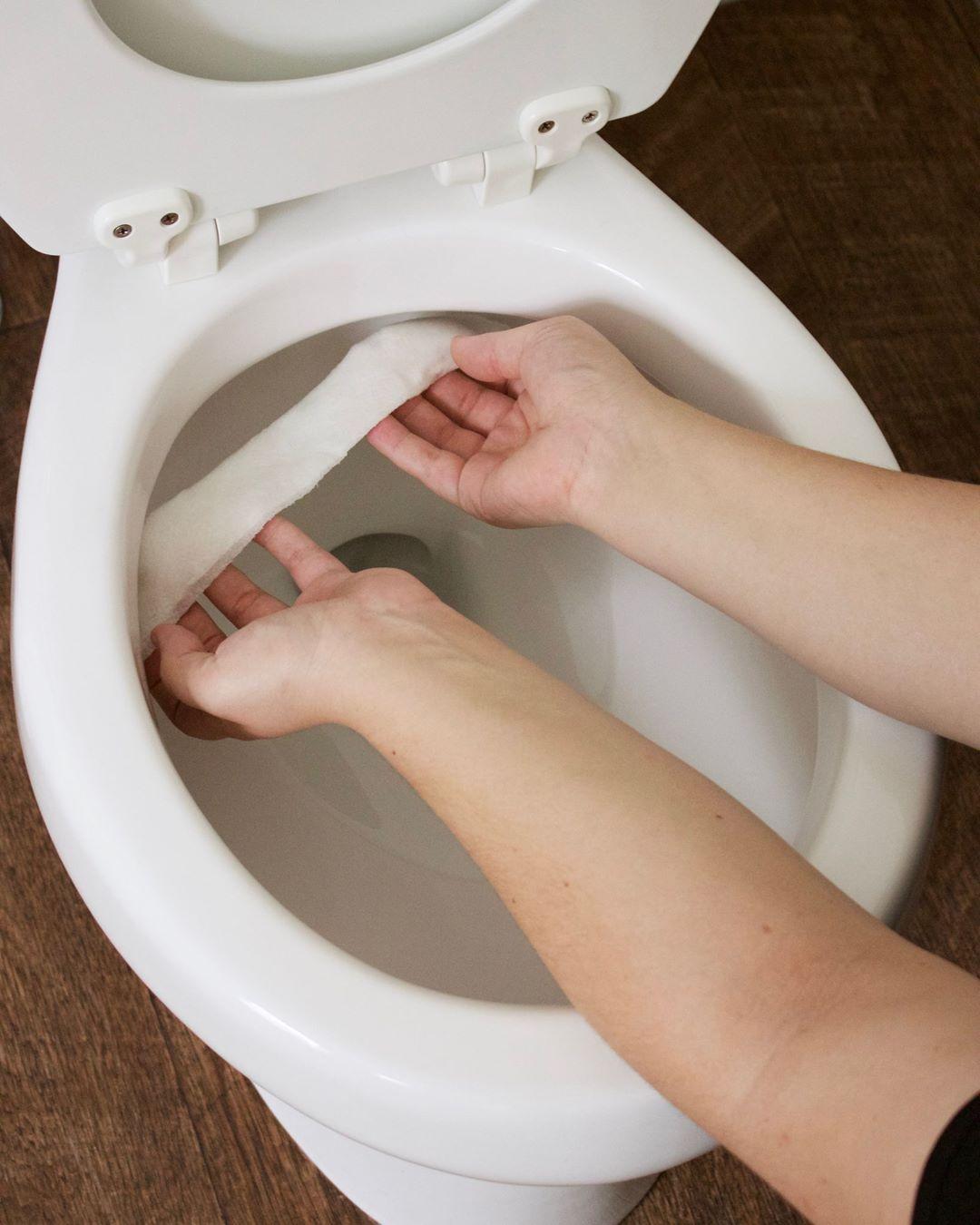 Είναι πολύ πιο εύκολο να αφαιρέσετε τη βρωμιά από την τουαλέτα, αν κάνετε κάποια προετοιμασία εκ των προτέρων. Για αυτό, ρίξτε λίγο ξύδι σε μερικές χαρτοπετσέτες, τοποθετήστε τες στην τουαλέτα και αφήστε τες για μερικές ώρες. Μετά από αυτό, το μόνο που χρειάζεται να κάνετε είναι να τις αφαιρέσετε.