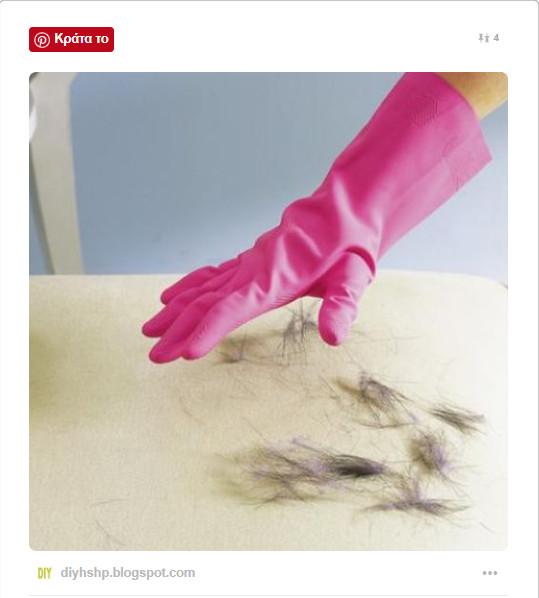 Για να απομακρύνετε τις τρίχες των κατοικίδιων ζώων από τα μαλακά έπιπλα, χρησιμοποιήστε πλαστικά γάντια. Αυτά θα μαζέψουν τέτοιου είδους σκόνες και βρωμιές.