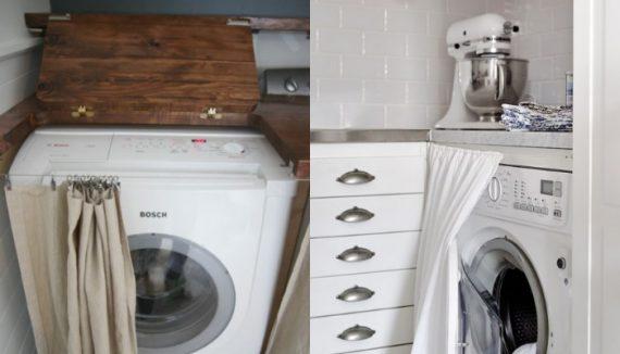 Αν δεν έχετε την οικονομική δυνατότητα για καινούρια έπιπλα, τότε μπορείτε να βάλετε την…φαντασία σας να δουλέψει υπέρ σας! Περάστε ένα σύρμα στο μπροστινό μέρος του πλυντηρίου και στη συνέχεια διαλέξτε μια κουρτίνα της αρεσκείας σας. Μοντέρνο, πρωτότυπο και σίγουρα διακριτικό.