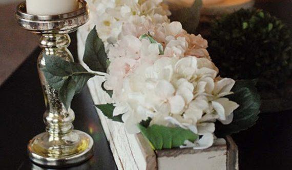 Αυτό το κιβώτιο λουλουδιών δίνει έναν κομψό τόνο. Δοκιμάστε ένα ασημένιο λουλούδι για είκοσι πέμπτη επέτειο ή χρυσό για μια πεντηκοστή επέτειο. Ένα μαύρο λουλούδι με λευκά λουλούδια, ένα λευκό τραπεζομάντιλο και μαύρα πιάτα δημιουργεί ένα σμόκιν χρώμα. Μπορείτε να γεμίσετε το κουτί με τα Χριστουγεννιάτικα στολίδια, τα πασχαλινά αυγά, τα κοχύλια, ή οτιδήποτε άλλο.