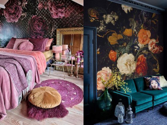 Ιδέες με φλοράλ ταπετσαρίες: Φλοράλ ταπετσαρίες τοίχου με μοντέρνα λουλούδια