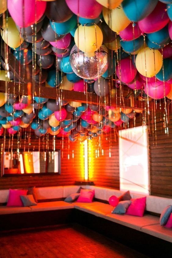 Βάζοντας πολύχρωμα μπαλόνια σε όλο το ταβάνι σας, θα δημιουργήσετε ένα αξέχαστο σκηνικό