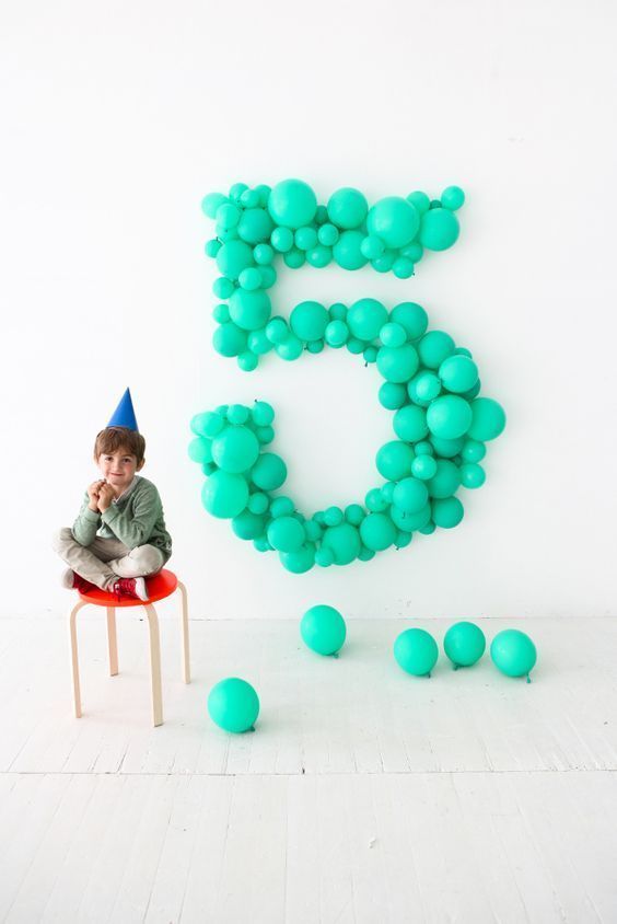 Χρησιμοποιήστε πολύχρωμα μπαλόνια σε ένα κενό τοίχο και δημιουργήστε με αυτά την ηλικία του παιδιού σας.