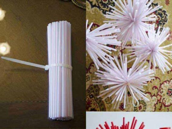 Φτιάξτε ένα εντυπωσιακό αστέρι χρησιμοποιώντας κάπου 30 καλαμάκια και κλωστή.