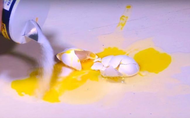 Ο ευκολότερος τρόπος για να καθαρίσετε ένα σπασμένο αυγό,είναι να το πασπαλίσετε με μπόλικο αλάτι και να το αφήσετε για 15 λεπτά. Στη συνέχεια, σκουπίστε με χαρτοπετσέτα.